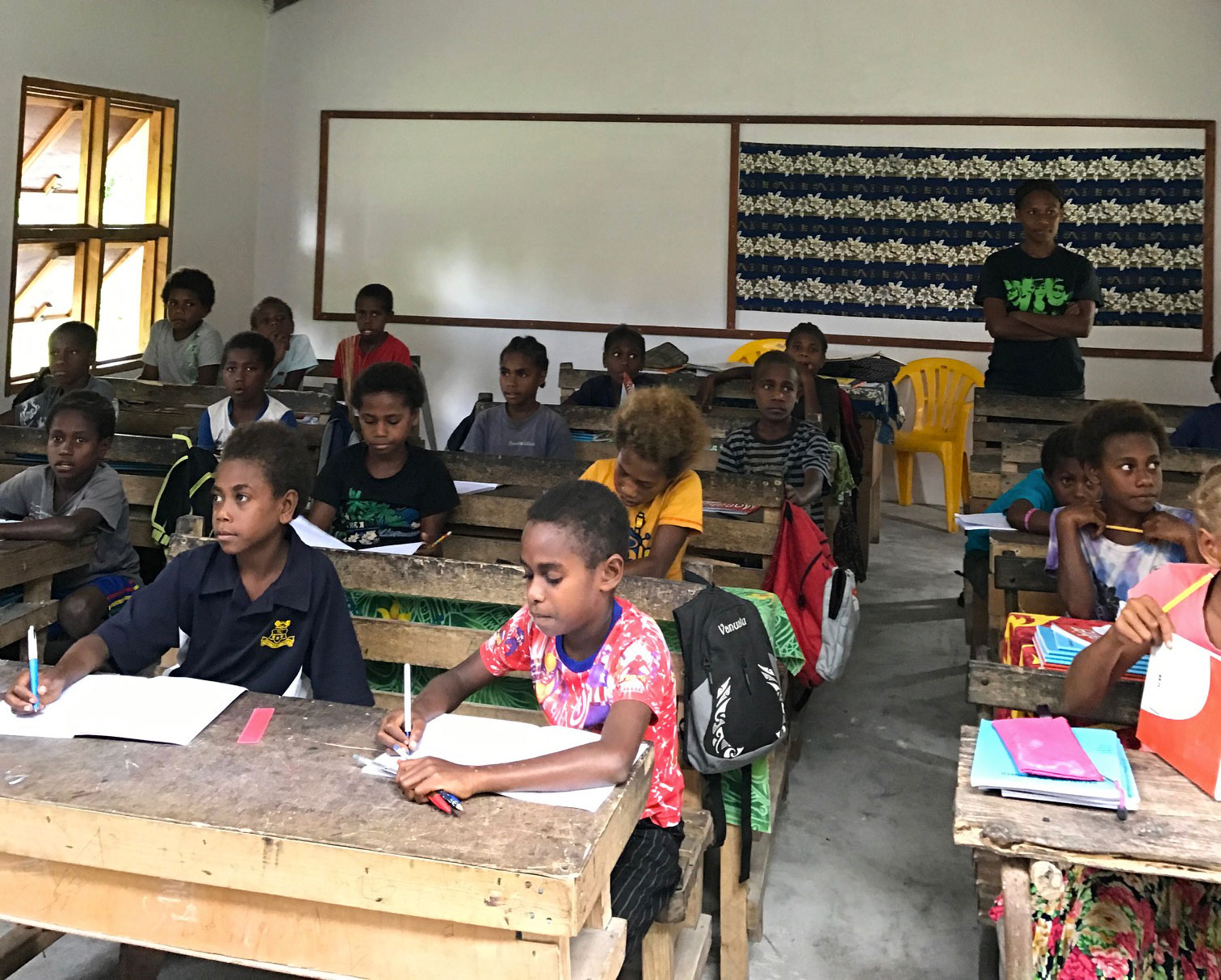 L’école de Manuapen accueille 250 enfants, de la maternelle au CM2. L’école a bénéficié de nombreuses aides d’associations et du gouvernement et est très bien entretenue. Il s’agit d’une école française. Le directeur nous a fait une demande de financement de 50 sacs de ciment (total 700€) pour terminer la construction d’une salle de classe. Ce sont les parents d’élèves qui se chargent des travaux.